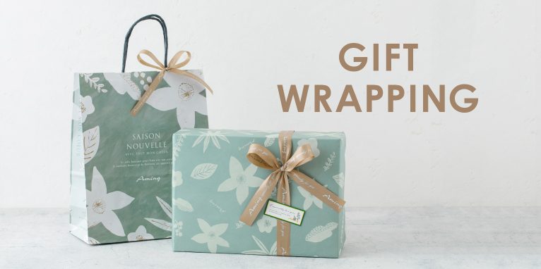 アミングでは、オリジナル包材でのギフトラッピングをご用意しております。スタッフが贈り物に合わせてラッピング方法をご提案し、1点1点丁寧にお包み致します。大切な方への贈り物にぜひご利用ください。※ラッピングは有料となっております