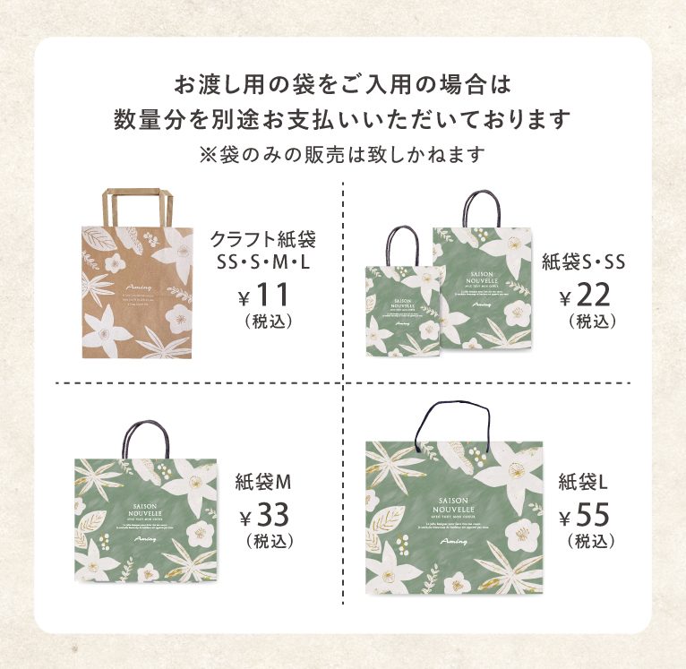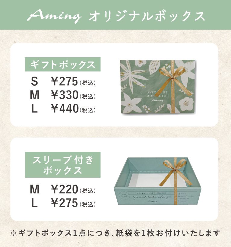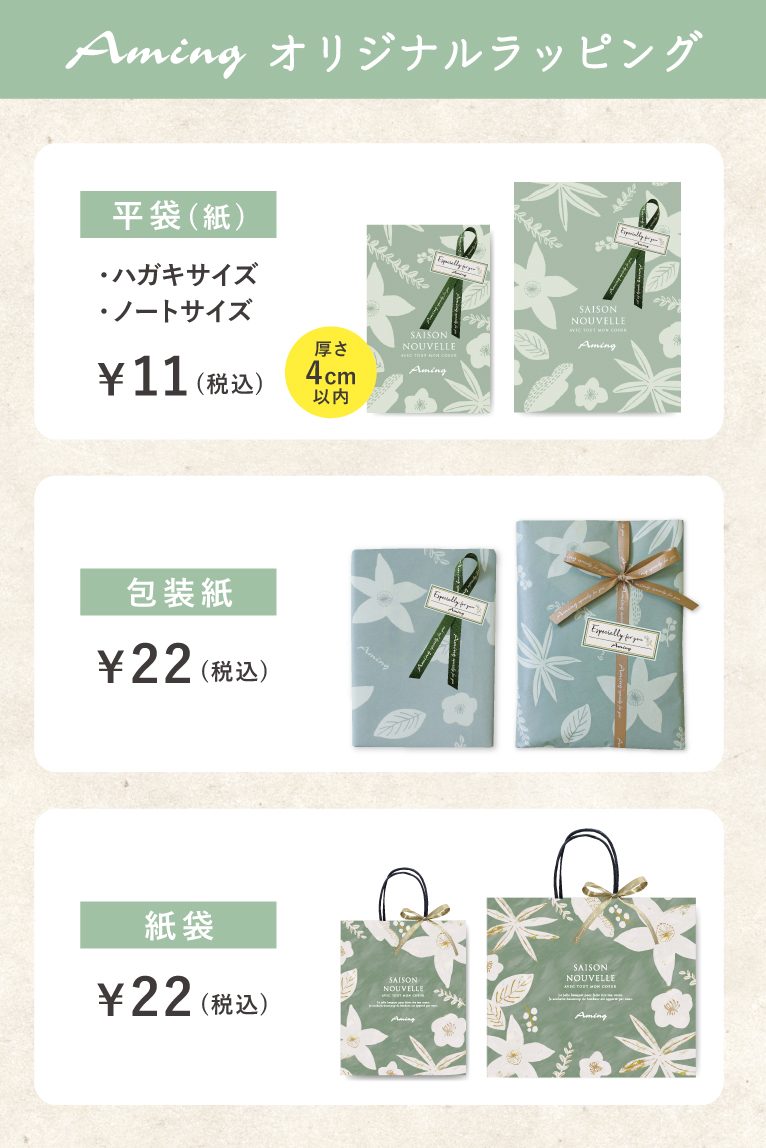 アミングのラッピング(有料)は下記の通りです。※ラッピング内容・価格は変動する場合がございます