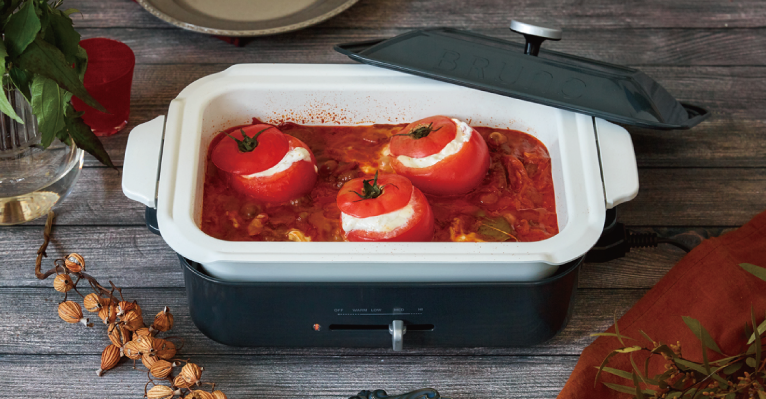 鋳物ホーローをイメージしたデザインが魅力的なホットプレート。高級感があり、テーブルの上にそのまま出してもおしゃれです。