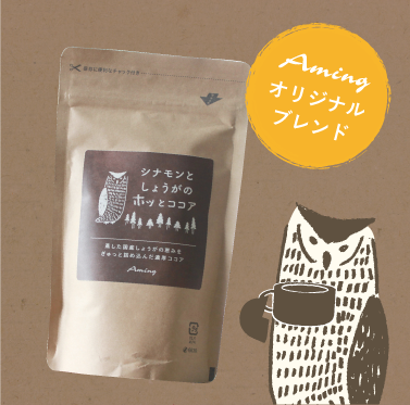 濃厚なココアと独自の技術で蒸した純国産生姜がおいしく摂れるしょうがココアです。アミングの冬の定番ホットドリンクです!
