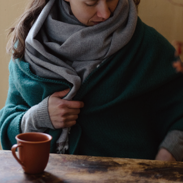 ウール100%の生地は軽くあたたかいのでオフィスで使うのも◎