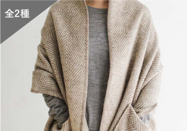 大きさは170×60cm。「MARIA」シリーズより10cmだけ短く、よりコンパクト。その分、生地の織り目が詰まって、フェルトのように起毛し厚みとあたたかさを感じます。