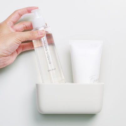 ちょっとした小物を収納するのに便利な収納ラック。底面に傾斜をつけ、穴をあけることで、水が溜まらず衛生的。マグネットタイプなので、好きな場所に移動ができるのもポイント!