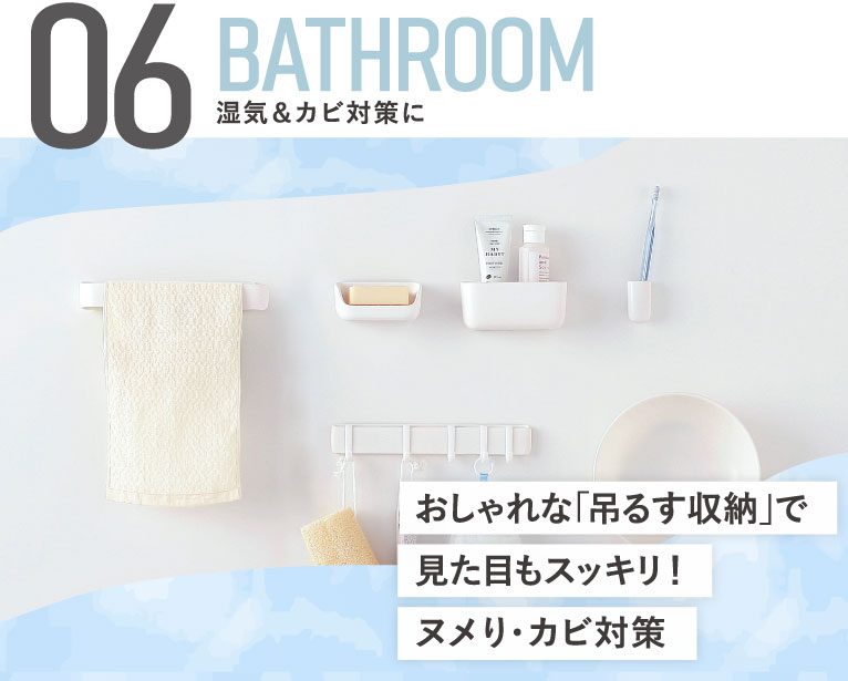 湿気が特に気になる水回りに!「吊るす収納」が活躍