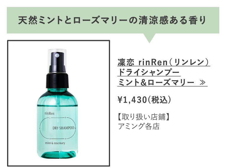 頭ほぐしを実践するときは、お気に入りの香りでリラックスできる「ドライシャンプー」がおすすめです。頭ほぐしのポイントでもある「呼吸を止めない」ことも、香りを楽しみながらだと意識せずに自然とできます。