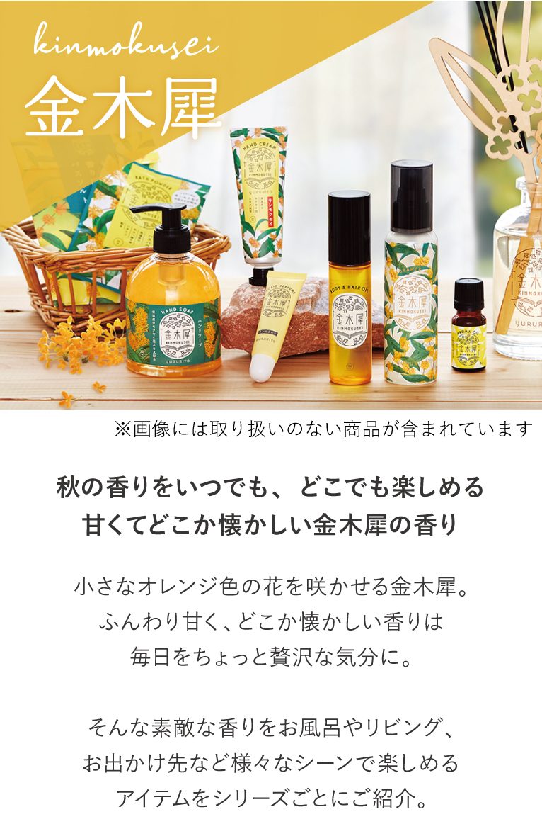 ■商品情報ゆるりと金木犀・ ハンドクリーム バスパウダー ¥220(税込)・ハンドクリーム バスパウダーL ¥990(税込)・ハンドソープ ¥660(税込)・ハンドケアセット ¥1,320(税込)・ハンドクリーム ¥660(税込)