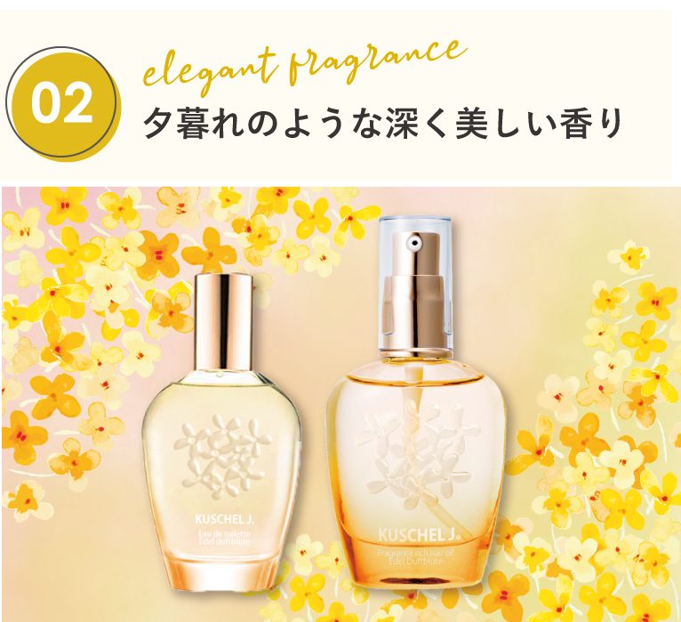 ■商品情報クシェルヨット・ヘアオイル エデルドゥフトブリューテ ¥1,980(税込)・オードトワレ エデルドゥフトブリューテ ¥1,980(税込)