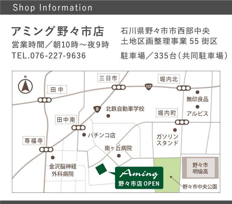3月1日(水)朝9:30より石川県野々市市に、「アミング野々市店」をグランドオープンいたします。