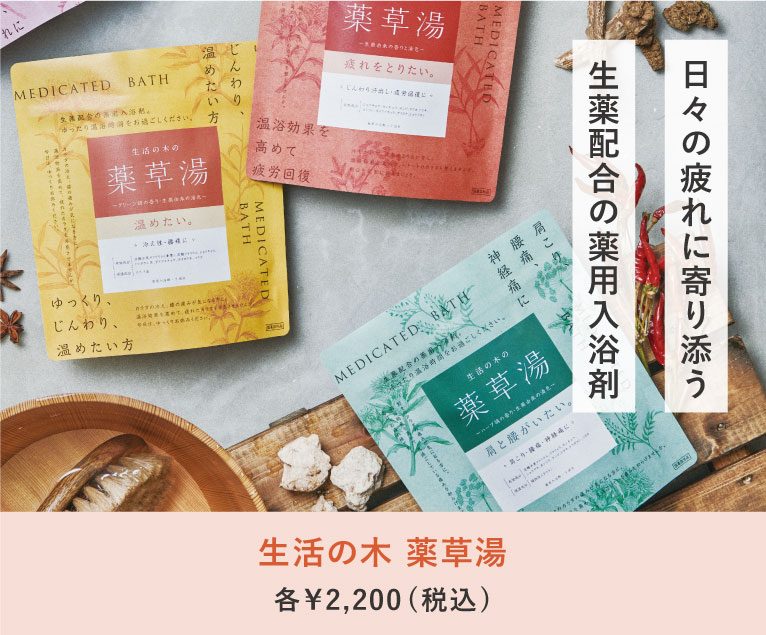 植物の恵みを取り入れた、生薬配合の薬用入浴剤。目的に寄り添った3種類のラインナップです。