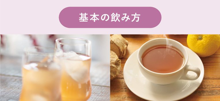 目安として、【原液20mLを水やお湯などで6~7倍に希釈】してご飲用ください。(525mLタイプには20mLの計量カップが付属しています。)