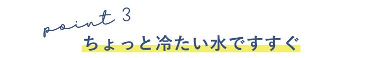 潤いを保てるよう、30〜34度のぬるめの温度ですすぎます。温かいと感じる水温ではなく、冷たく感じるくらいが◎肌をこすらないように、やさしくすすぎましょう。