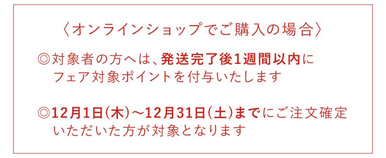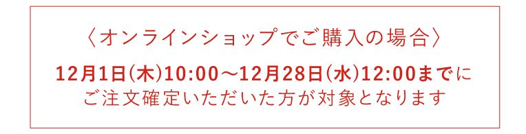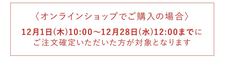 【オンラインショップ 開催期間】〈Fair01〉12月1日(木)10:00~12月31日(土)までにご注文確定いただいた方が対象