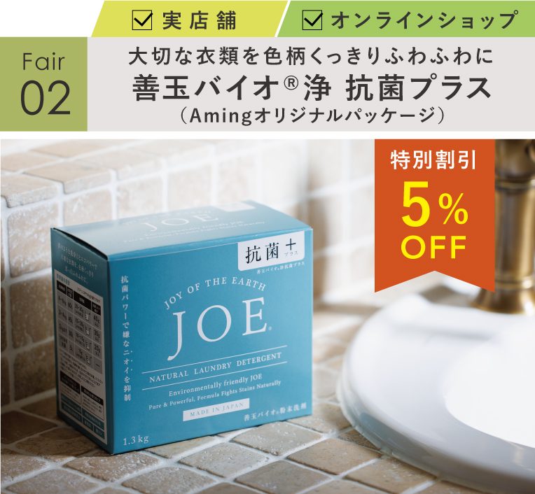【フェア対象商品】善玉バイオ®浄 抗菌プラス(Amingオリジナルパッケージ) ¥1,760(税込)※善玉バイオ®浄 抗菌プラス(袋)・善玉バイオ®浄はフェア対象外