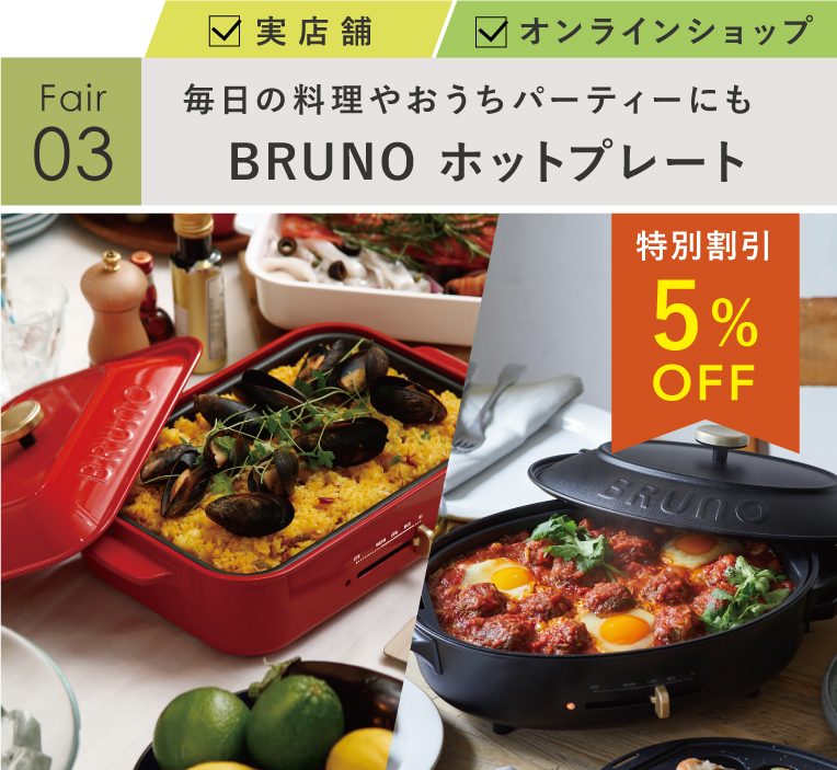 【フェア対象商品】BRUNO(ブルーノ)・コンパクトホットプレート 各種・ホットプレートグランデサイズ 各種・オーバルホットプレート 各種※本体のみ対象、別売りのプレートはフェア対象外です