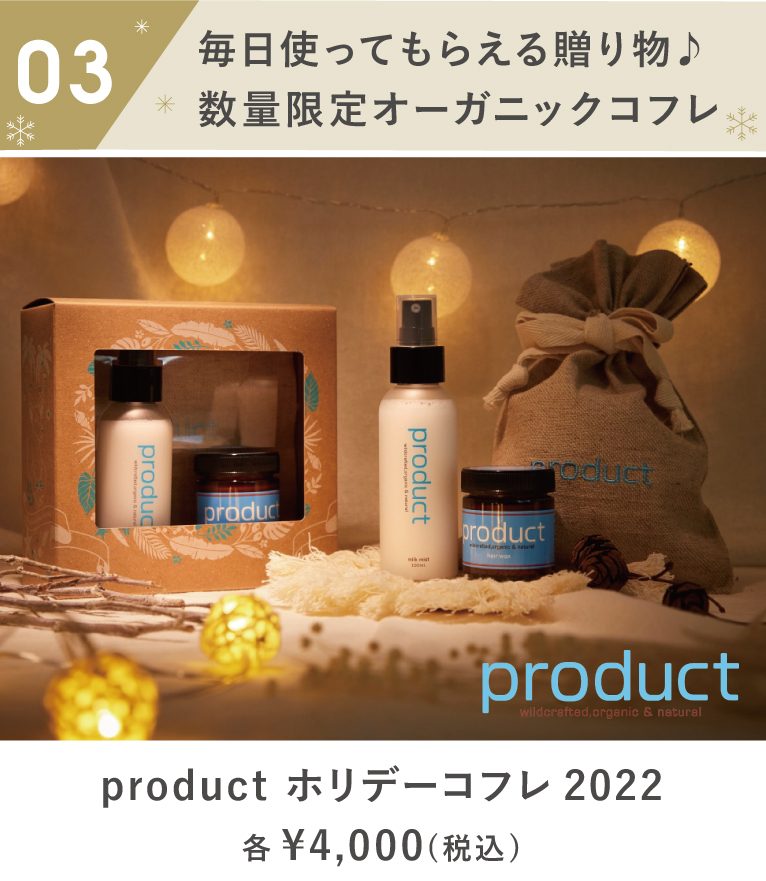 肌に必要な自然由来原料のみで作られた、オーガニックのヘアケア&スキンケアブランド「product(ザ・プロダクト)」から、数量限定で2種類のホリデーコフレが登場!