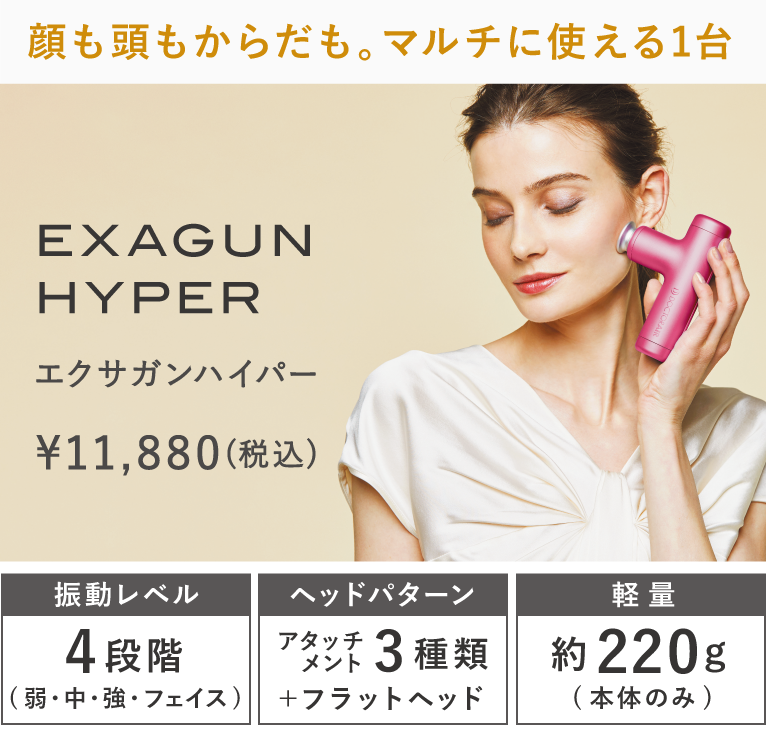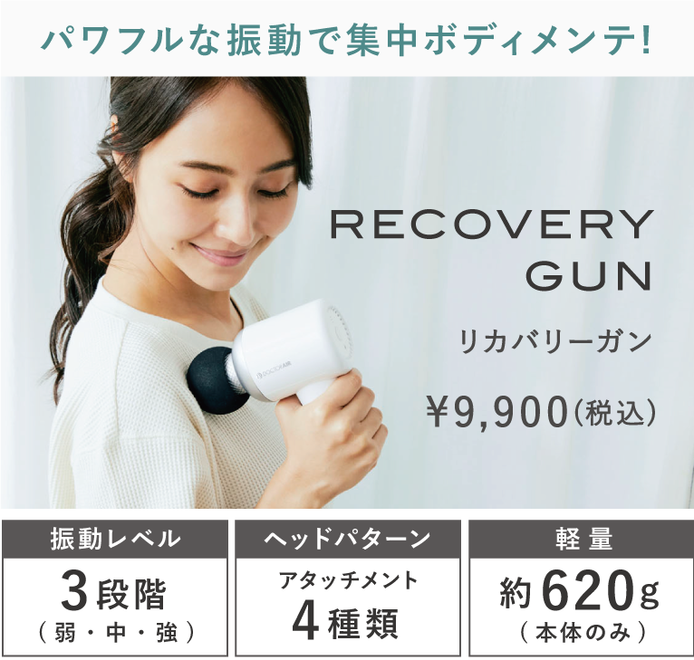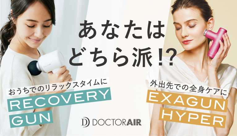 スマホサイズで持ち運びも楽々の「EXAGUN HYPER(エクサガンハイパー)」と、おうちでのリラックスタイムにぴったりの「RECOVERY GUN(リカバリーガン)」は、コンパクト&軽量で旅先や運動時のウォーミングアップなど幅広いシーンで活躍してくれます。