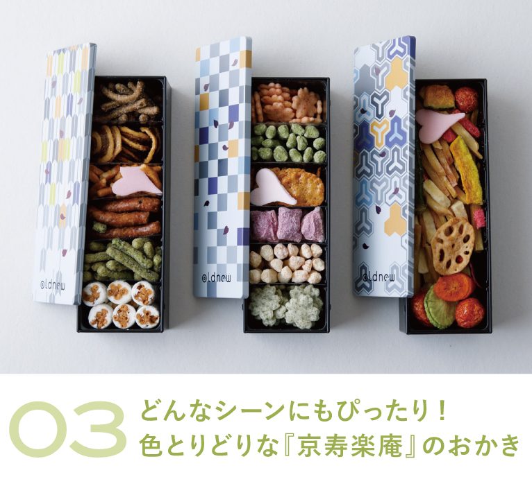 oldnew(オールドニュー) 缶入りおかき 彩(いろどり) 各種¥1,188(税込)