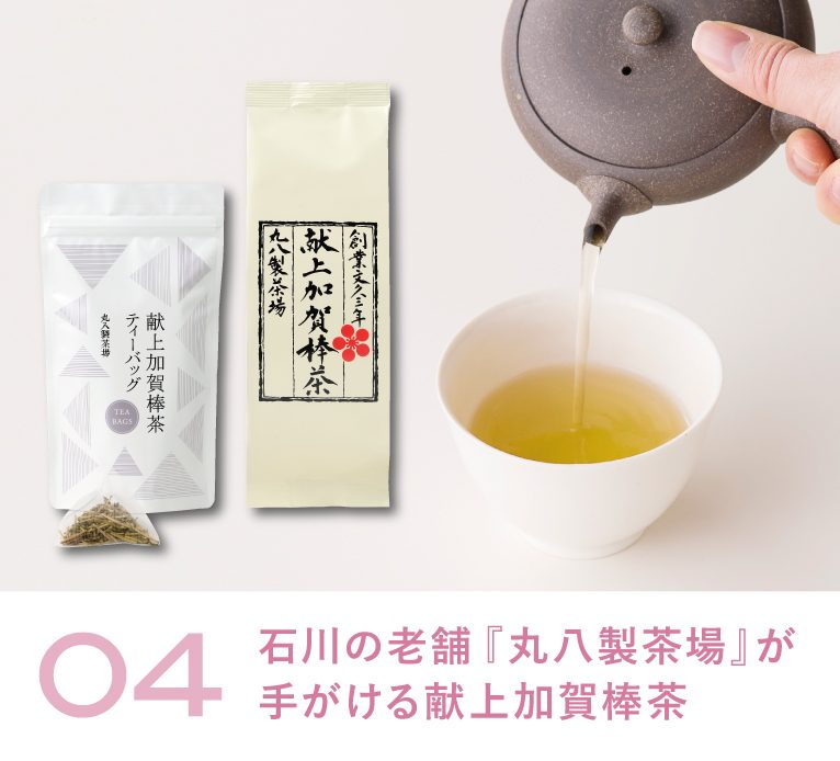 【取り扱い店舗】アミング各店※「04 献上加賀棒茶・加賀いろは テトラシリーズ」はオンラインショップでは取り扱っておりません