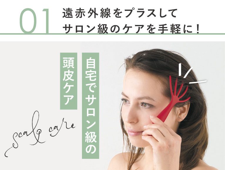 「自宅でサロン級の頭皮ケア」をコンセプトに開発された、頭皮ケアに遠赤外線をプラスしたアイテム。すきま時間で手軽にケアできるのが人気のポイントで、お風呂でもお使いいただけます。