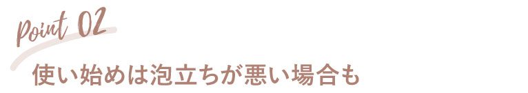 今までお使いのシャンプーやコンディショナー、スタイリング剤によっては、トリートメントシャンプーの泡立ちが悪い場合があります。3日〜1週間程で付着しているものが取れてくると、どんどん泡立ちが良くなり、乾かしたときのふんわり感やまとまり感も変わってきます。