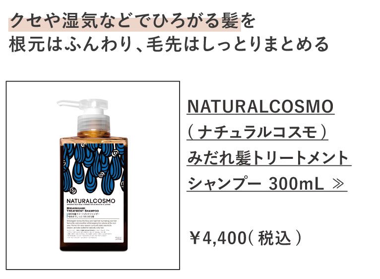 表面がバサバサなダメージヘアだと、シリコンを入れていないナチュラルコスモではキシミを感じる場合があります。キシミがあるということは、髪のキューティクルが開いているというサイン。キシミが強い場合は、同シリーズのトリートメントハーブでケアするのがおすすめです。