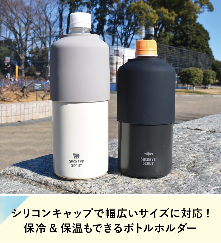 ペットボトルを入れてシリコンのフタをするだけで、保冷・保温して美味しい温度を保ってくれるペットボトルホルダー。結露を防いでくれるので、デスクに置いたりかばんに入れて持ち運ぶことも◎シリコンのキャップを調整すれば、600mLのペットボトルにも使えます。