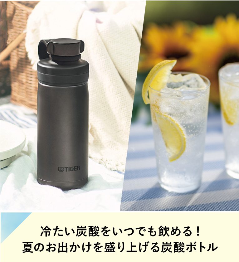 炭酸と冷たい温度を長持ちさせてくれる炭酸ボトル。独自開発の栓が、キャップを開けたときの中身の噴き出しや飛び散りを防ぎ、ボトル内の圧力も調整してくれるので軽い力で開けられます。