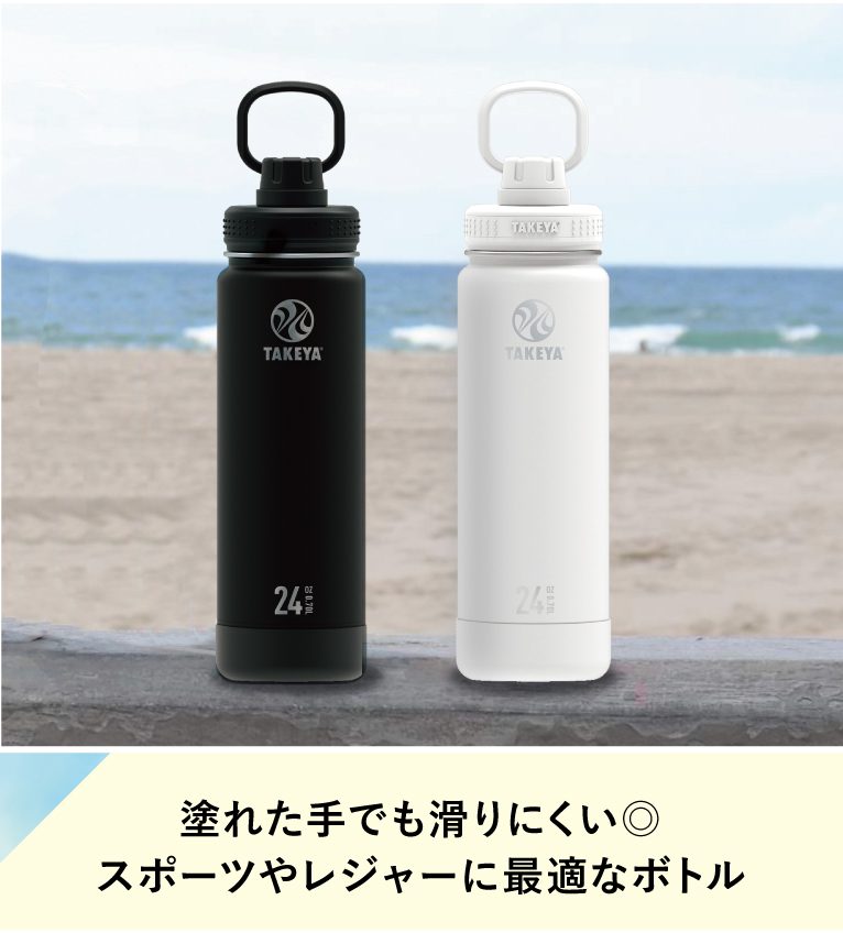 カリフォルニア・ハンティントンビーチ生まれのステンレスボトル「アクティブライン」。飲みやすくこぼれにくい細めの飲み口や、濡れた手でも滑りにくいパウダーコーティングが施された本体は、夏のスポーツやレジャーでのお供に最適です◎