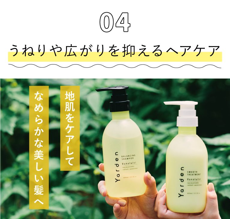 地肌をケアしながら髪のうねりやごわつきを集中補修し、さらさらでなめらかな髪へ導いてくれます。
