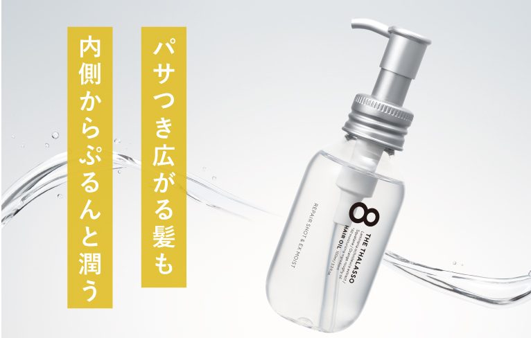 海洋由来の美髪成分をはじめとする美容液が髪の芯までしっかり浸透し、内側からぷるんと潤うツヤ髪へ導くヘアオイル。