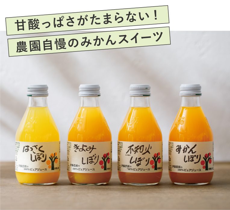 国産のみかんだけを使ったこだわりのみかんスイーツたち。品種によって様々な味わいを楽しめるので、食べ・飲み比べられるセットで贈るのがおすすめです◎