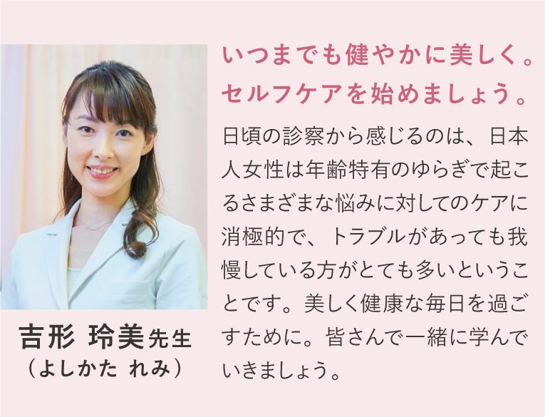 女性の心と体の健康は“女性ホルモン”の影響を大きく受けて変わっていきます。“女性ホルモン”の基礎知識と婦人科特有の病気など、いつまでも健やかで美しく過ごすための方法を、女性ホルモンに関するテレビ番組に出演された、産婦人科医の吉形玲美先生をお招きして分かりやすく解説していただきます。
