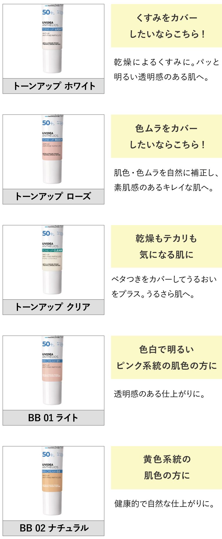 さらに使い心地の良さやA波以外の紫外線に対する高い防御力、様々な方の肌に合うように開発されたカラーバリエーションと魅力いっぱい!