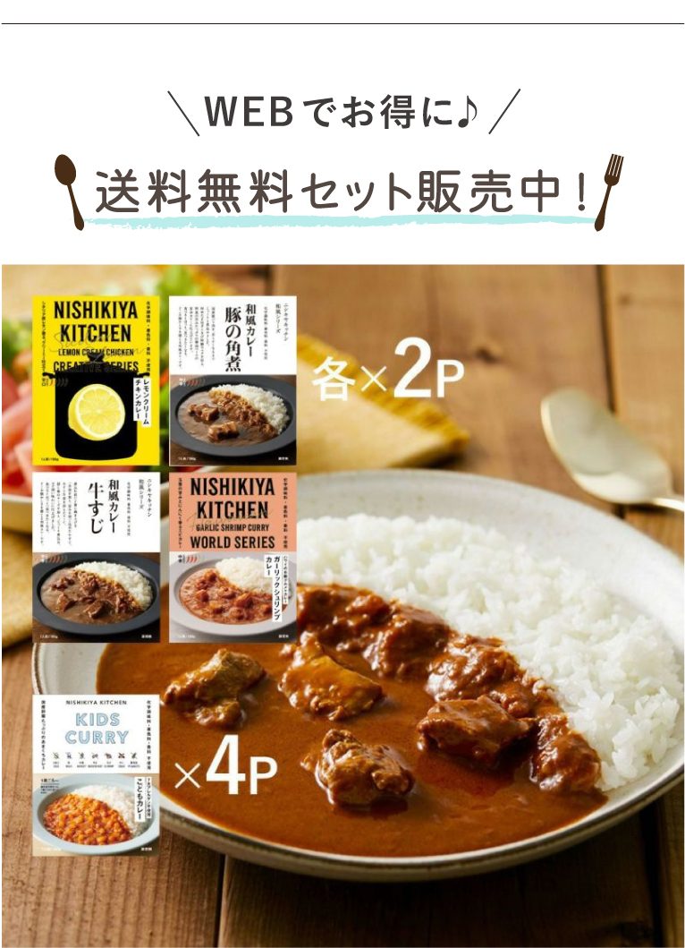 NISHIKIYA KITCHEN(ニシキヤキッチン)人気の4味と、こどもカレーを組み合わせたセット(計12食)を送料無料で販売中!