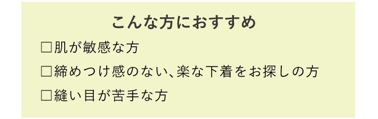 一般的に洋服やインナーには、合成繊維を原料にした縫い糸を使用するのが主流になっていますが、本当に心地良いものを届けたいという想いから、生産効率ではなく綿糸で縫製することにこだわり続けています。