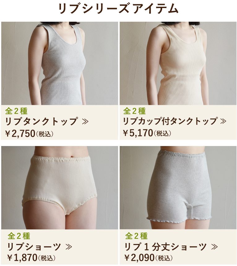 オーガニックコットンブランド『天衣無縫』ができた当時から現在まで続くロングセラー商品の“リブインナーシリーズ”。