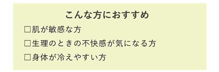 センターシートはオーガニックコットン100%!低刺激で肌温度にしっかりなじみ、生理期間のお悩みやトラブルを抱える方、敏感肌の方にも◎
