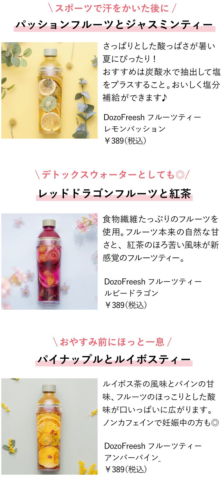 ドライフルーツがごろっと贅沢に入った見た目もかわいいフルーツティー。砂糖不使用、着色料不使用、保存料不使用でおいしく健康的に水分補給ができる新感覚なフルーツティーです♪