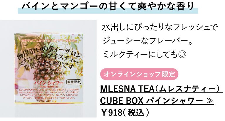 紅茶大国・スリランカの高地にある「ヌワラエリア」で取れた最高品質の茶葉を使用している紅茶ブランド「ムレスナティー」。新鮮な茶葉を使用しているので、水出しでも渋みがなく、すっきりとした飲み心地。