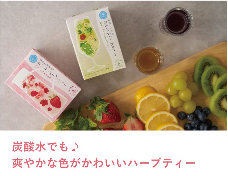 爽やかな色とフレーバーを楽しめるハーブティー。水だけでなく、炭酸水でも抽出ができるので暑い夏の日にぴったりです。