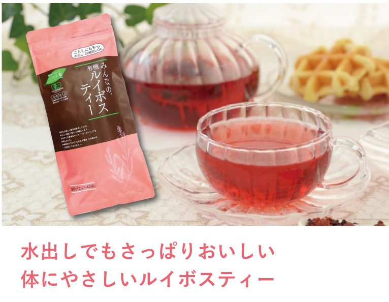 強烈な日差しと酸性の乾燥した大地、きびしい環境で育った有機ルイボスティーの中でも貴重なオーガニック・スーペリアを100%使用しました。苦味や渋みがなく爽やかな味わいです。