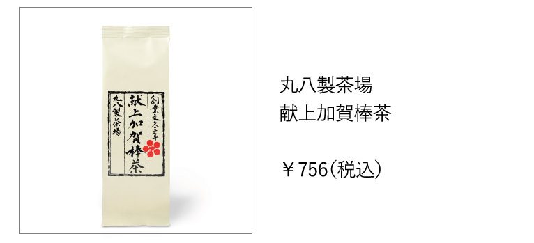 一番摘みの茎を使った、ほうじ茶。香ばしさと澄んだおいしさが楽しめる上質なお茶です。商品名に「献上」という言葉がついているのは、昭和天皇に捧げられたお茶だからだそう。