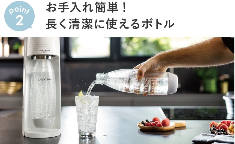 普段飲んでいる水をわずか数秒で炭酸水にできる炭酸水メーカー「ソーダストリーム」。簡単な操作で好みの強さの炭酸水が作れるので、子どもから大人まで家族みんなで楽しめます。