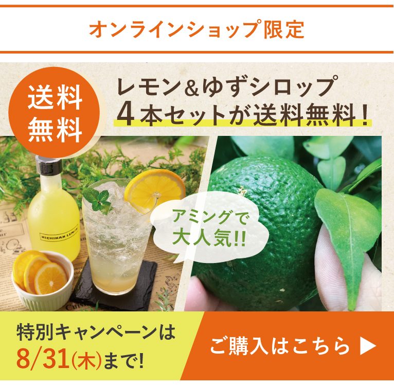 全て国産の素材を使ってつくられたこだわりの無添加シロップ。宮崎県日南産の「レモンシロップ」と、宮崎県銀鏡(しろみ)産の香り高い「ゆずシロップ」。宮崎の太陽をたっぷり浴びて育った果実の爽やかな甘さが特徴です。