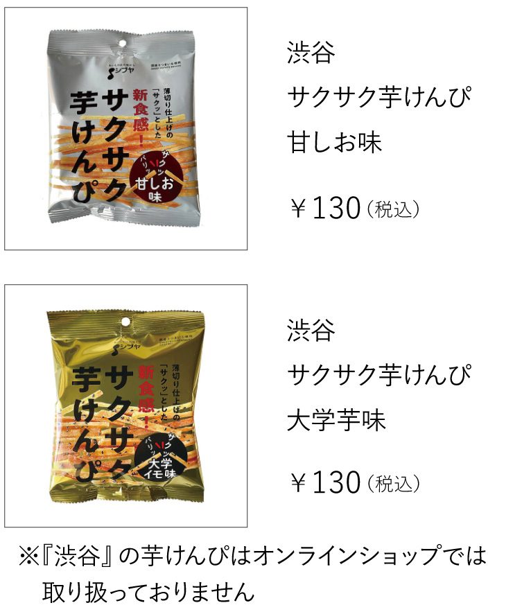 塩っけと甘さのバランスが絶妙な「甘しお味」と蜜と黒ゴマの風味が香ばしい「大学芋味」。どちらも、一度口にすると食べる手が止まらない美味しさです♪