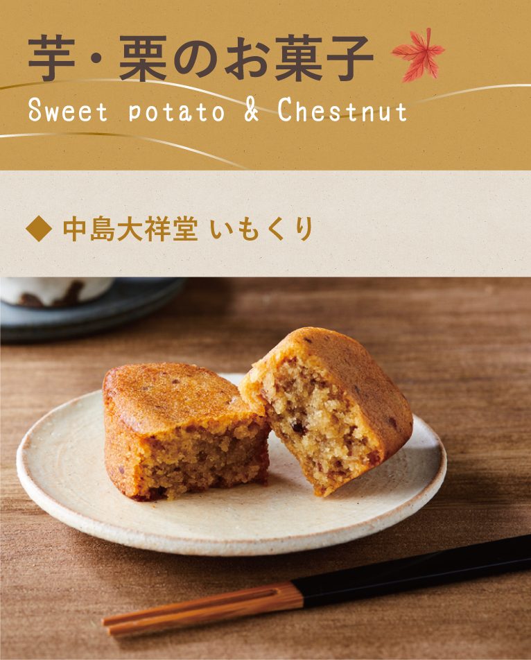 「いもくり」は丁寧に裏ごしした“和栗”と甘みのある“鳴門金時”を使用し、風味豊かに焼き上げたお菓子。余分な原料を使わないことで引き立つ素材本来の美味しさです。
