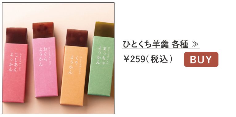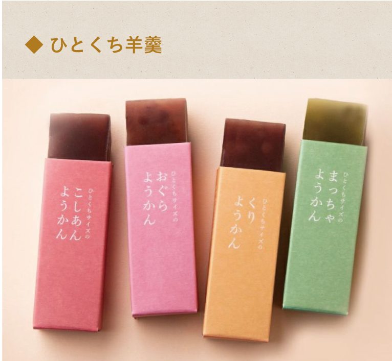 「ひとくち羊羹」は、素材の風味を生かした京風羊羹。あんこの風味を残すためにあえてあっさりと炊き上げているので、口当たりが軽いのが特徴です。手軽に食べられる大きさなので、おやつやお茶請けにもぴったり◎