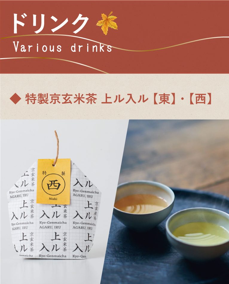 「上ル入ル」は煎茶ベースの【東】と、ほうじ茶ベースの【西】の2種類。どちらも個包装ティーバッグなので手軽に楽しめるのも魅力です◎