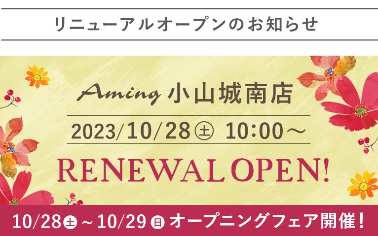 この度、アミング小山城南店は店舗を改装し、10/28(土)にリニューアルオープンをさせていただくことになりました。