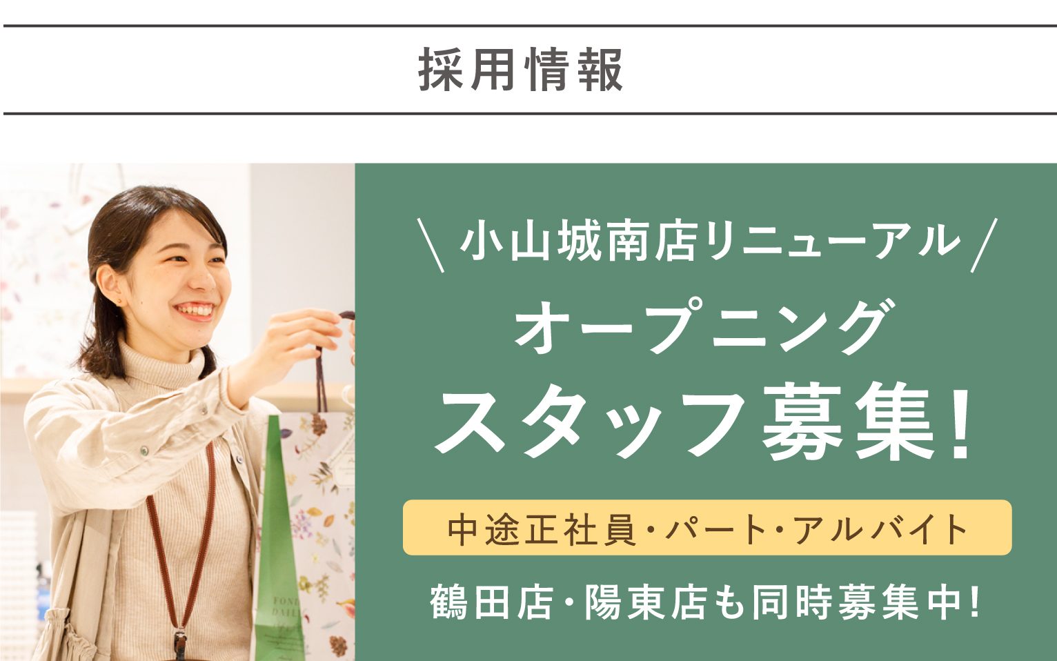 店舗改装に伴い、小山城南店は下記の期間お休みをいただきます。